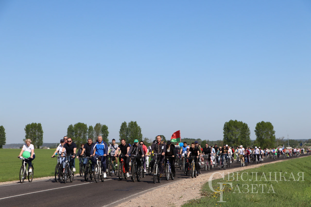 Уже седьмой год по инициативе Свислочского районного объединения профсоюзов активные, спортивные, любящие свою малую родину работники организаций, ветераны труда и школьники встречают Первомай массовым велопробегом. Поддержку в организации мероприятия профсоюзу традиционно оказывает районный физкультурно-спортивный клуб.