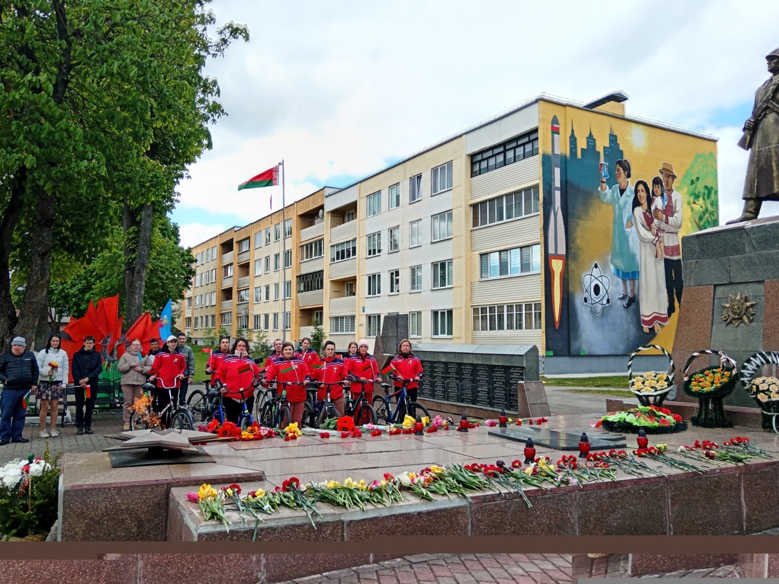 Участники велопробега возложили цветы и почтили минутой молчания память тех, кто внес свой неоценимый вклад в освобождение страны и Великую Победу.
