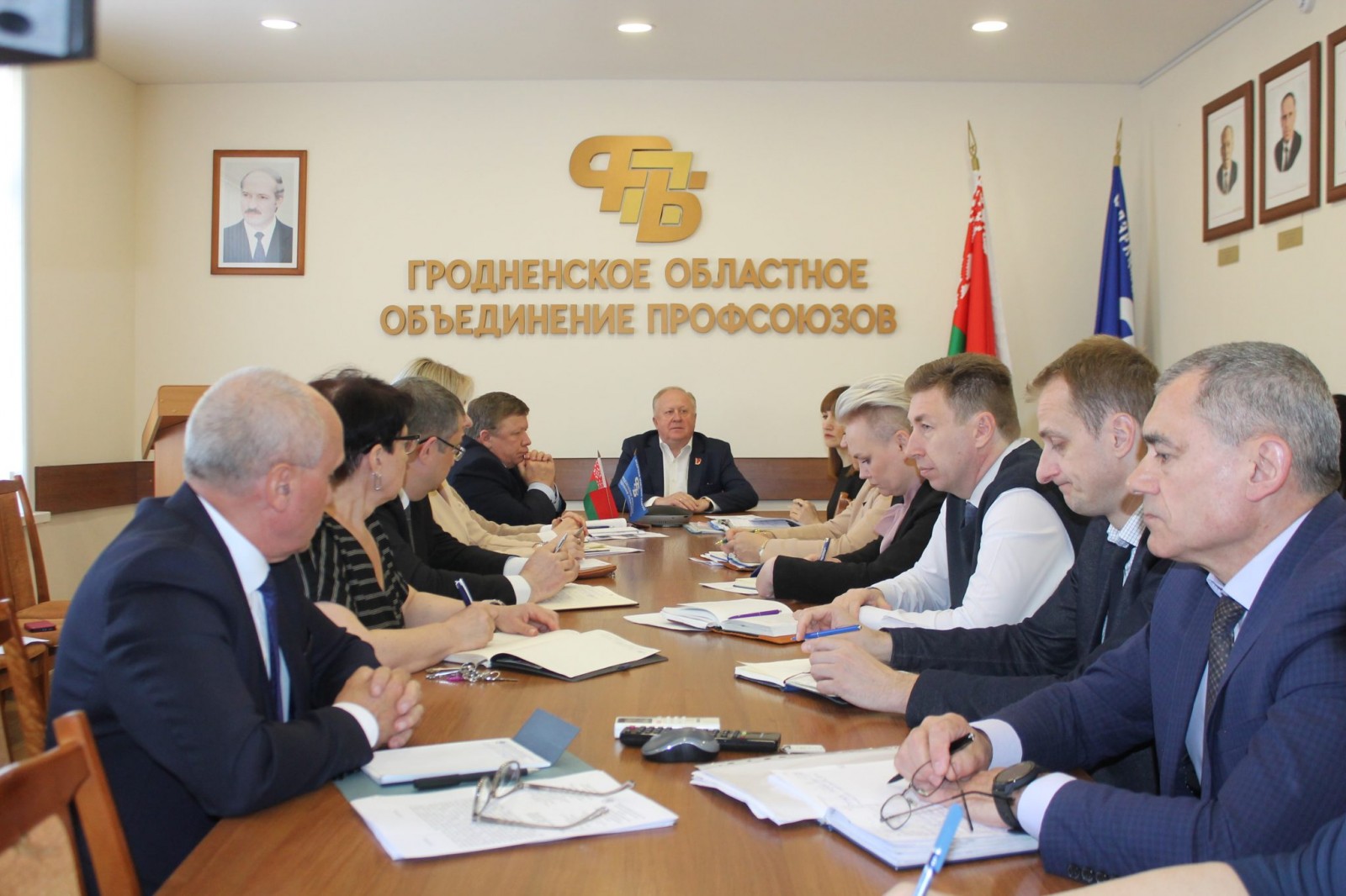 Председатель Гродненского областного объединения профсоюзов Виктор Лискович провёл совещание с председателями областных организаций отраслевых профсоюзов.