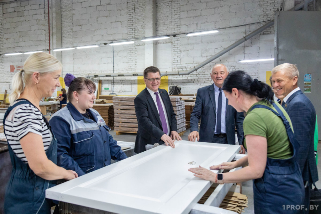 Юрий Сенько посетил в Вилейке ОАО «Стройдетали» – крупное отечественное деревообрабатывающее предприятие. Сегодня оно, как и многие предприятия отрасли, из-за введения санкций испытывает определенные сложности, но не сдается, продолжает и дальше выпускать высококачественную продукцию и разрабатывать новые модели.