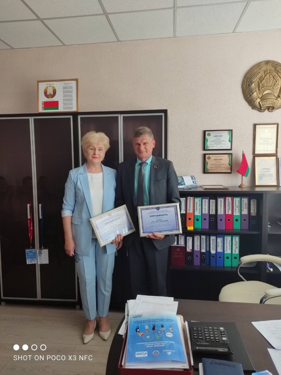 За добросовестный труд и достигнутые результаты в работе, а также за взаимодействие по обеспечению соблюдения трудовых прав членов профсоюза, профилактики производственного травматизма и в связи с 30-ти летием образования Департамента государственной инспекции труда Министерства труда и социальной защиты Республики Беларусь Почётной грамотой Гродненской областной организации Белорусского профсоюза работников государственных и других учреждений награждена Вероника Красницкая; Благодарностью председателя Гродненской областной организации Белорусского профсоюза работников государственных и других учреждений награждены Светлана Шатохина и Александр Волчек.