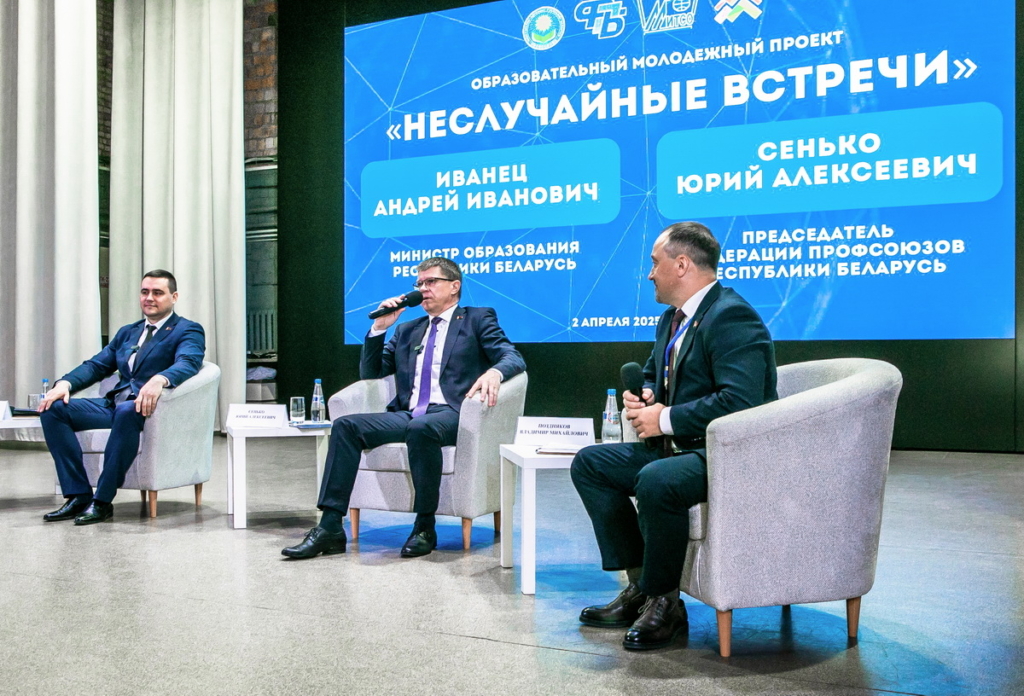 Такое заявление лидер национального профцентра сделал в Международном университете «МИТСО» в рамках республиканского образовательного проекта «Неслучайные встречи». Мероприятие стало частью Республиканского образовательного форума «Студсовет. Продвижение», на котором председатель ФПБ Юрий Сенько и министр образования Беларуси Андрей Иванец ответили на вопросы участников.