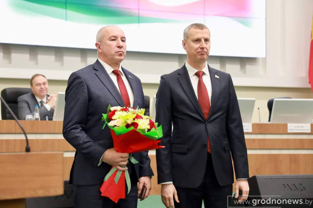 Предшественник нынешнего председателя Гродненского облисполкома Владимир Караник проработал в должности 4,5 года. Он также лично приехал поздравить Юрия Хаджимуратовича с назначением. Экс-губернатора, и уже нынешнего вице-премьера Беларуси, Владимира Степановича провожали громкими аплодисментами.