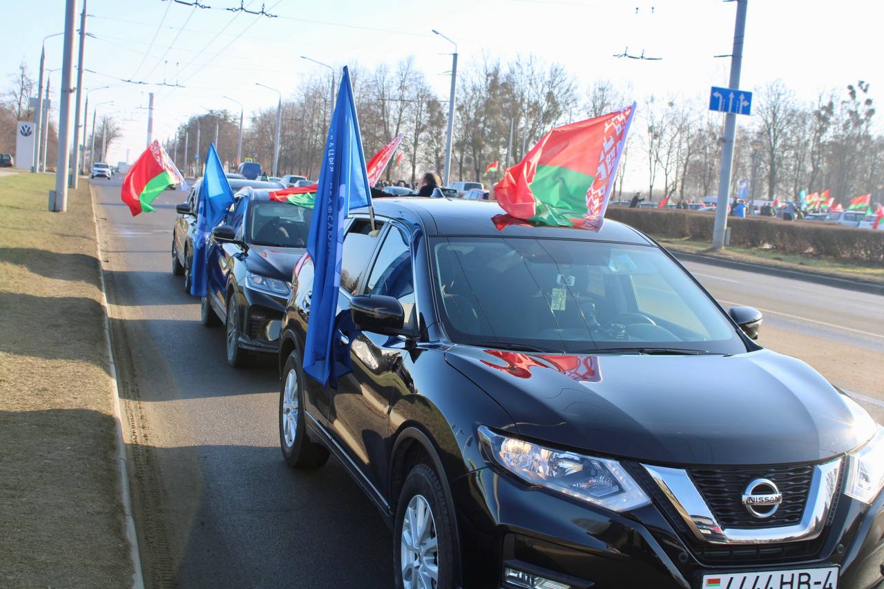 Развивающиеся на ветру белорусские флаги, отличное настроение и радость от результатов выборов Президента Республики Беларусь. На площадке у Кургана Славы собрались более 200 автомобилей и 500 участников. «За Беларусь!» , «За Президента» — то тут, то там слышались восклицания от участников.