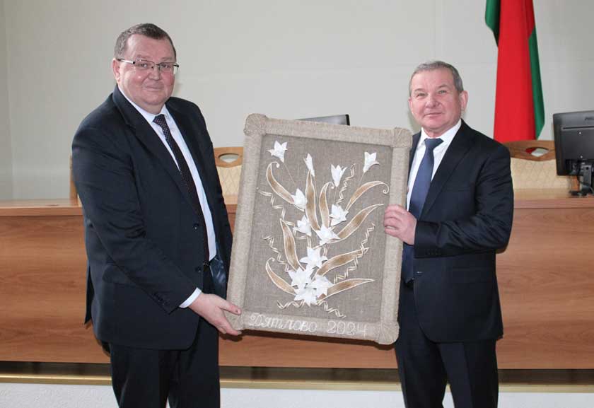– Гэта сімвалічны падарунак, бо Беларусь славіцца лёнам, які так і называюць “беларускім шоўкам”, а адно з перапрацоўчых прадпрыемстваў – ААТ “Дзятлаўскі льнозавод” – знаходзіцца менавіта ў нашым раёне, – адзначыў Андрэй Садоўскі. – Няхай гэта прыгажосць нагадвае вам аб наведванні Дзятлаўшчыны.
