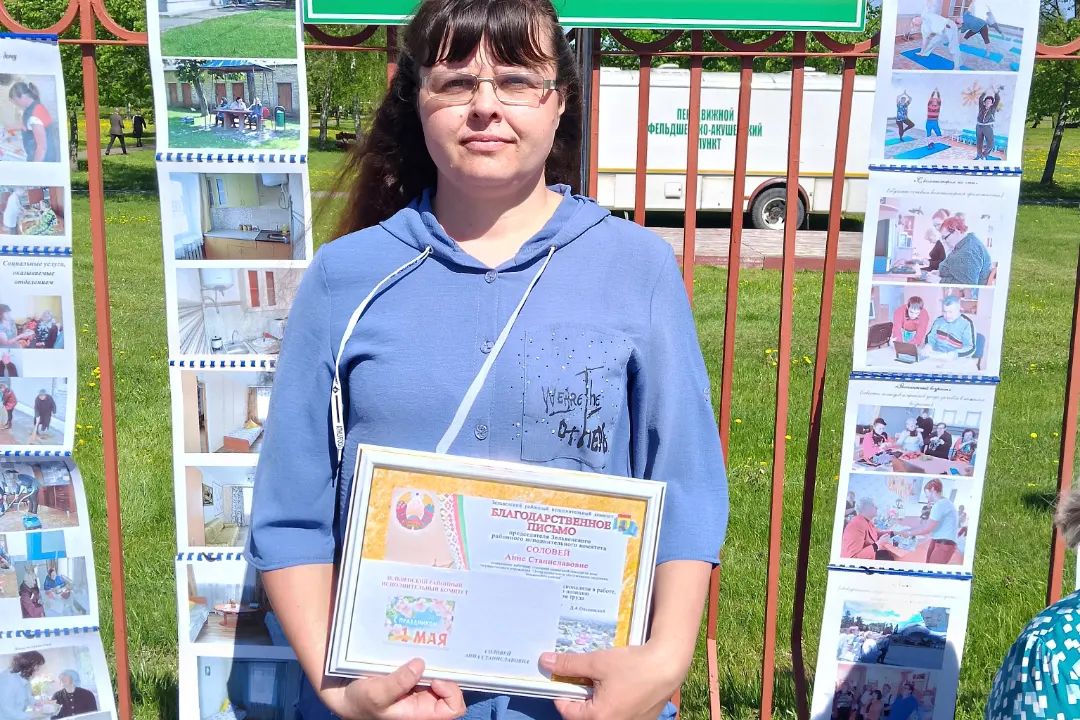 С хорошим настроением представители социальной службы района пришли на праздничные мероприятия, организованные в центре Зельвы. Свои достижения и результаты труда отразили в выставке-презентации под открытым небом «Знак качества». Еще один повод для гордости появился именно в минуты, когда чествовали передовиков: социальный работник Людмила Шейко удостоена сертификата о занесении на районную Доску почета, Анна Соловей награждена Благодарственным письмом председателя Зельвенского районного исполнительного комитета.