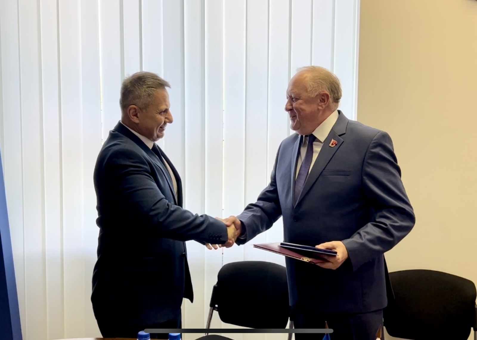 Присутствующий на мероприятии заместитель прокурора Гродненской области Владимир Клишин, пользуясь случаем, поблагодарил Виктора Лисковича за плодотворное сотрудничество и вручил юбилейную медаль «100 лет органам прокуратуры Беларуси» от Генерального прокурора Республики Беларусь Андрея Шведа.